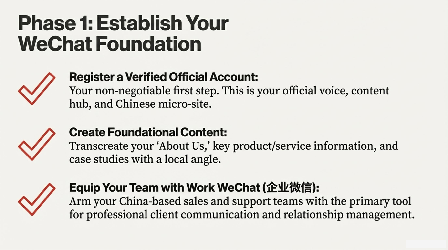 Begin your active presence by focusing on the “B2B Powerhouses” identified earlier. Specifically, your first and most critical asset should be a WeChat Official Account. This will serve as your central hub for publishing high-value content, engaging in deep communication with prospects, and nurturing leads. Consider this your foundational asset for building long-term customer relationships in China.