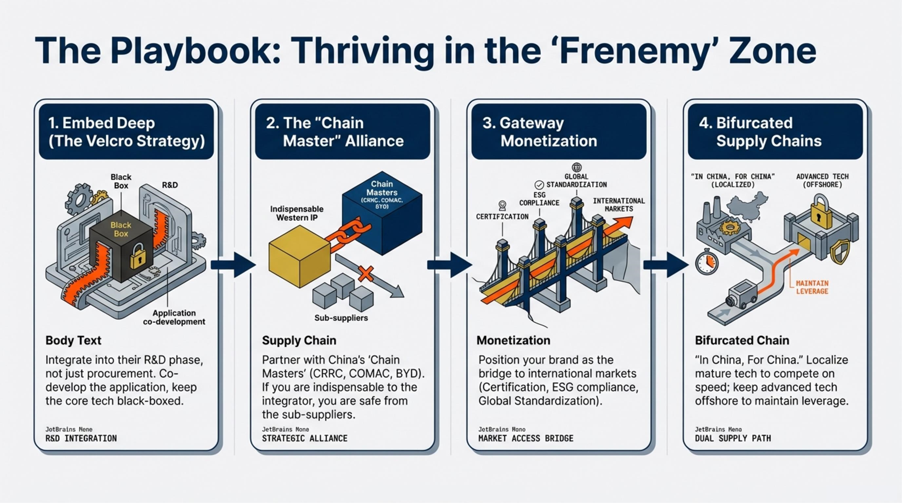 Direct Impact on Western Enterprises: Failure to secure a “Choke Point” position results in the immediate erosion of premium pricing power. Without a structural moat, Western firms face exclusion from the supply chains of Chinese “Chain Leaders” like CRRC or COMAC, losing their seat at the table during the next phase of China’s industrial upgrade.