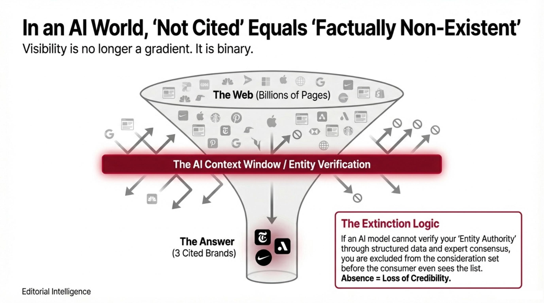 - “If your brand is not synthesized in the AI’s answer, you do not exist in the consumer’s decision window.”