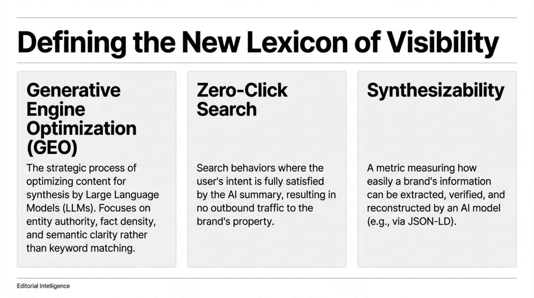- “GEO is the strategic process of optimizing content to increase a brand’s ‘Citation Score’ within AI-synthesized answers.”