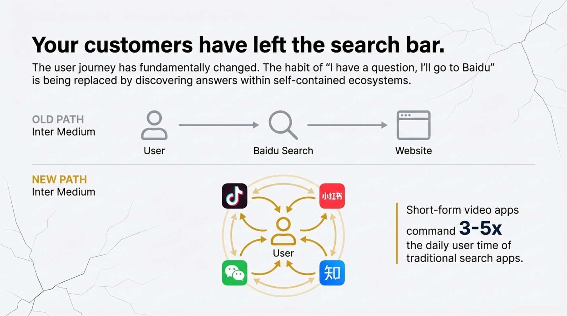Baidu’s painful transition is a clear bellwether for the future of digital marketing in China. The disruptive forces compelling Baidu to fundamentally remake itself are the same forces that will shape strategy for every business operating in the market. The old playbook of buying traffic and optimizing for clicks is becoming obsolete, replaced by a new paradigm centered on intelligence, ecosystems, and direct outcomes.