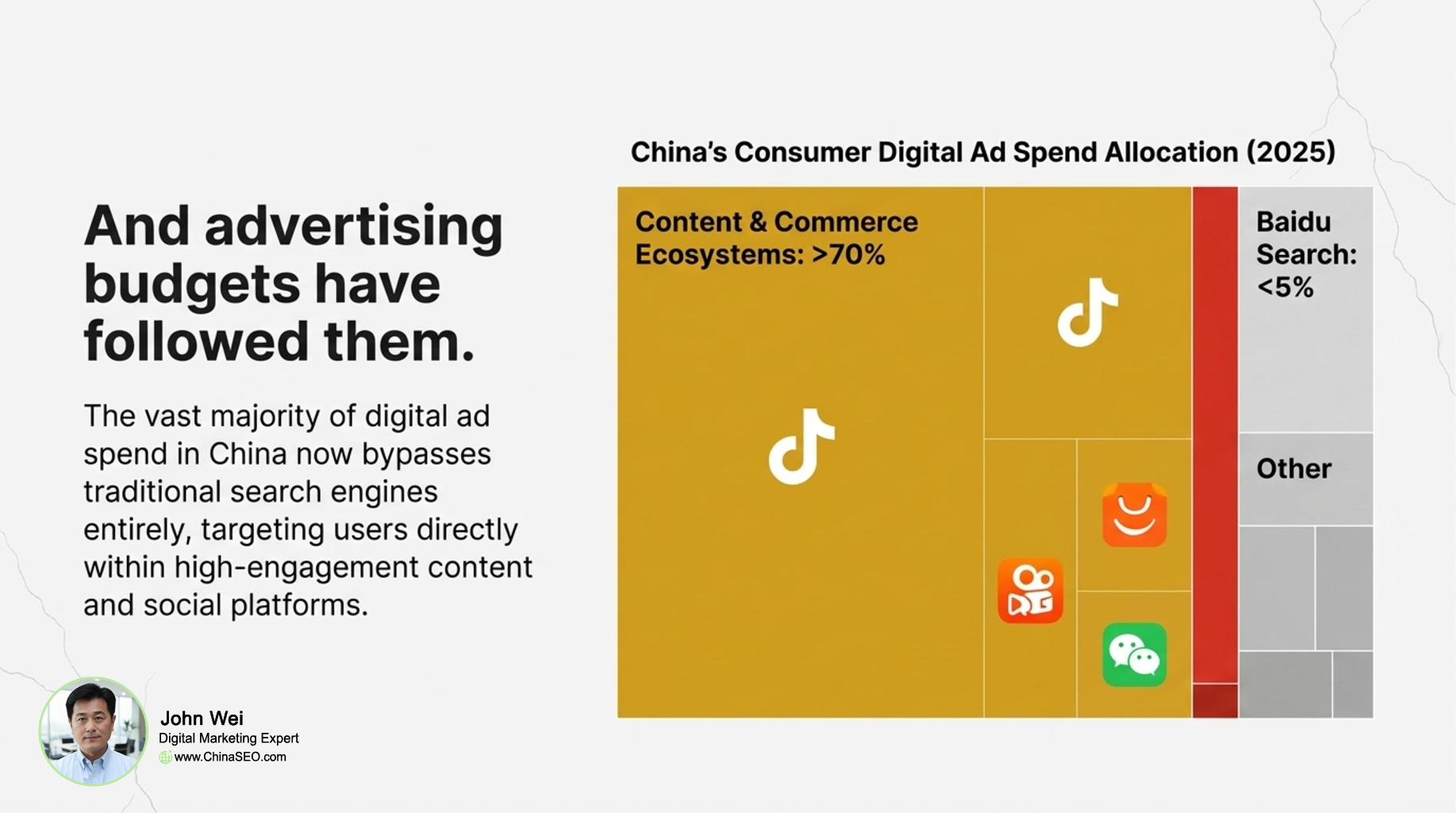 - More than 70% of consumer product advertising budgets are now directed toward these high-engagement platforms, with Baidu’s share falling below 5%.